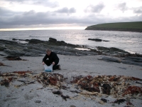 Mit meinem Topfroller zerkleinere ich zur Zeit Muschelsand und Gesteine, die ich vom letzten Urlaub auf Orkney, Schottland, mitgebracht habe.